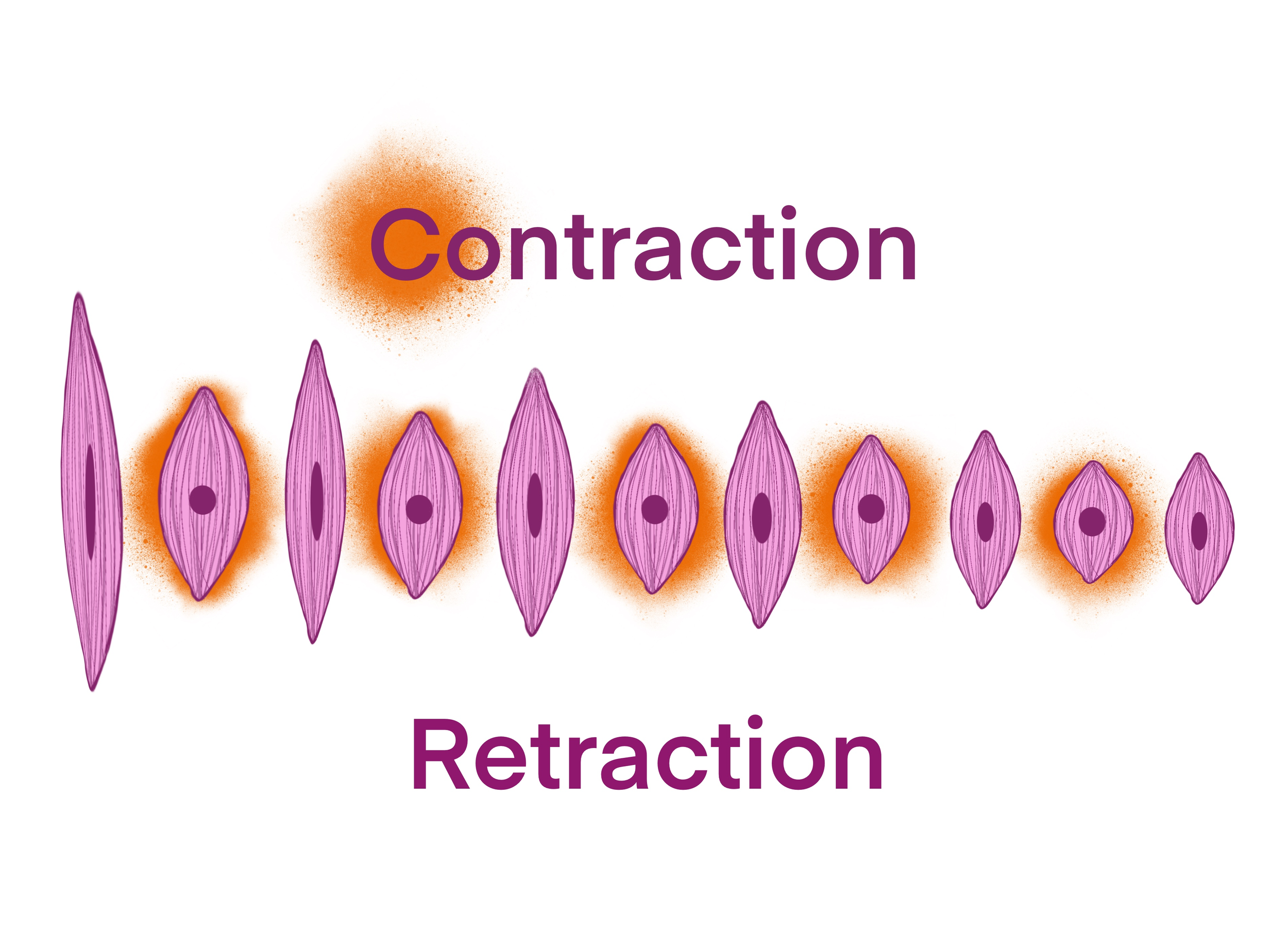 When you have a contraction, your uterus gets tight and then relaxes. This is because of the uterine muscle fibres that run vertically and horizontal circular muscles. These muscles during the first stage of labour by helping gentle squeeze the baby in and down, while pulling the cervix back to open it.